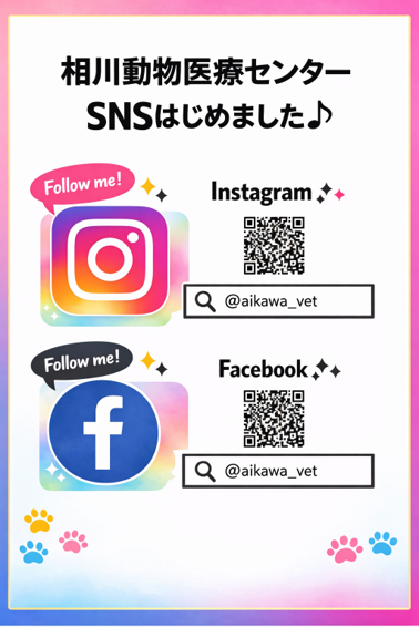この度、相川動物医療センターの公式SNS(Instagram・Facebook)を開設いたしました。