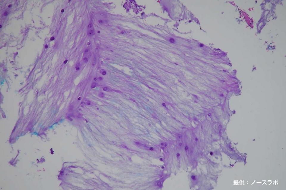 術中に摘出した椎間板の線維輪は変性して疎になっており、正常犬と比較して脆弱化していました。